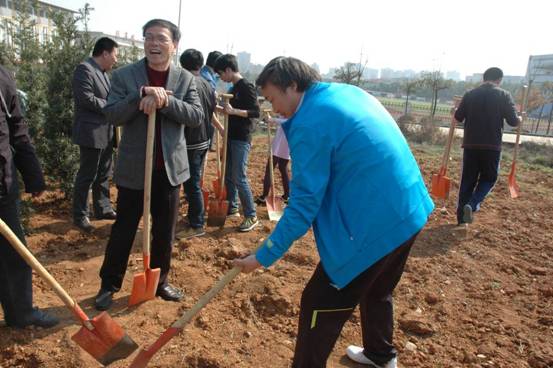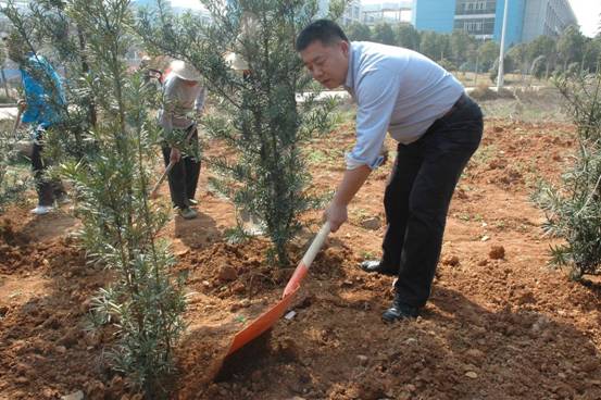 阳光灿烂,春意融融,正是植树的好时节。3月17日下午,校领导马蜂、戴向军、王路群和各部门、各学院教职工代表来到体育馆北边空地,参加党政办和后勤管理处共同组织的植树活动。