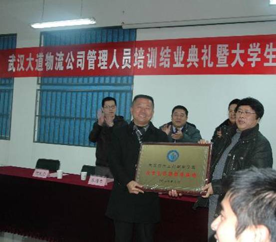 培训结束后,我校与大道物流公司举行了培训结业典礼暨大学生服务基地授牌签约仪式。
