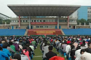 9月26日上午,我校在田径运动场举行了2013级新生法制安全教育报告会,报告由校保卫处处长张建国主讲。全体新生聆听了法制安全报告。