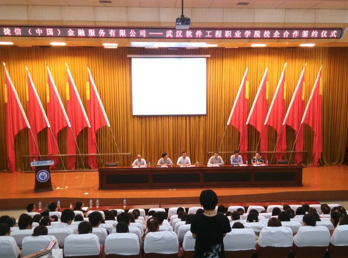 6月6日,我校在学术报告厅一号厅举行“捷信(中国)金融服务有限公司与武汉软件工程职业学院校企合作签约仪式”。捷信(中国)金融服务有限公司武汉分公司总经理Peter、催贷部经理蔡春强,我校副校长王路群、经济管理系主任赵国明出席签约仪式。经管系党总支书记刘扬主持签约仪式。