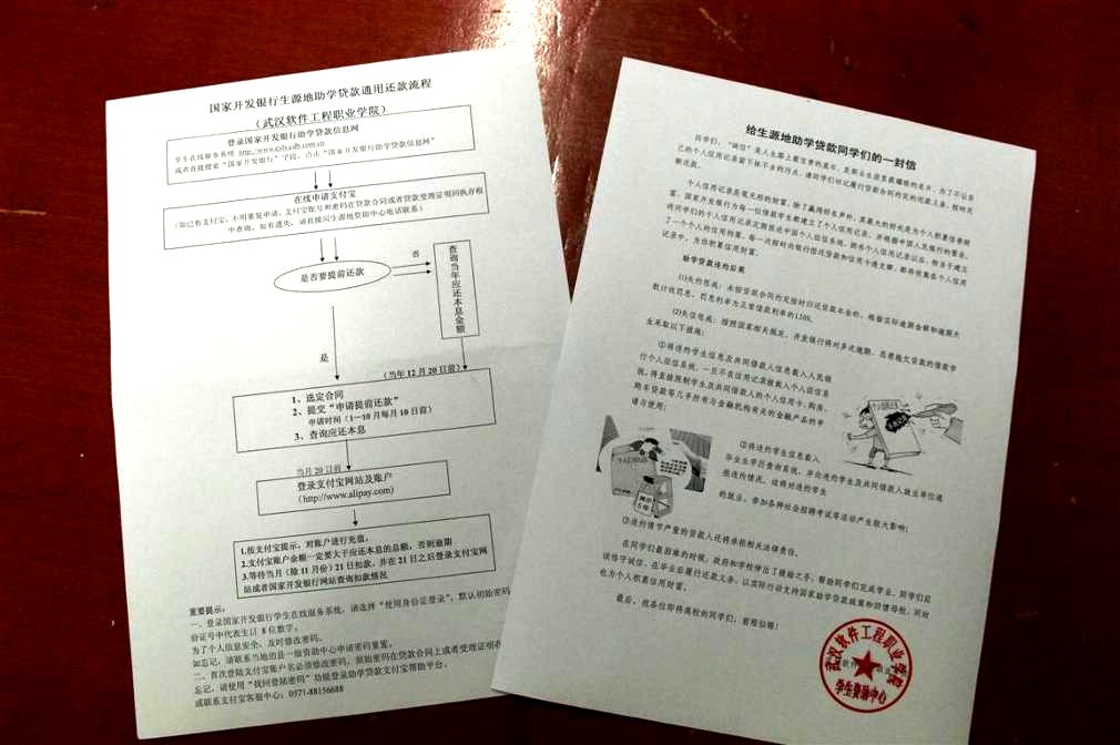 与此同时,我校资助中心还为每一位贷款毕业生印发了生源地贷款还款流程图和给贷款学生的一封信,以帮助贷款学生尽早了解贷款还款的整个过程和还款时间,帮助学生树立良好的还款意识。