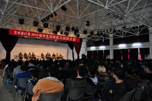 (通讯员:陈菡)2012年11月20日下午,艺术设计系为了帮助2010级同学们顺利完成为期半年的顶岗实习活动,在学院多功能厅召开了2010级学生顶岗实习动员大会。艺术设计系系主任陈天荣、系党总支书记王鹰、实习实训教研室主任陈兵、学生科科长关爱勤及相关专业指导老师、辅导员与2010级全体学生参加了此次动员大会。