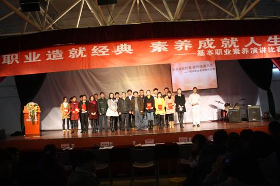 (通讯员 张素君)自今年学校首次开设《基本职业素养》课程以来,职业素养一词已渐渐走入许多同学的思想中。为了进一步激发同学们对职业素养能力的认知,公共课部《基本职业素养》教学团队于2012年12月13日下午2:00在多功能厅组织了该课程系列活动之三《职业成就经典 素养成就人生》为主题的演讲比赛。