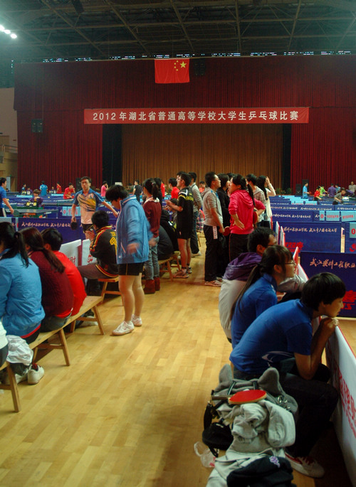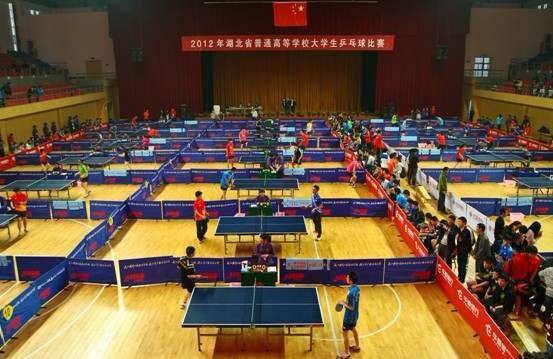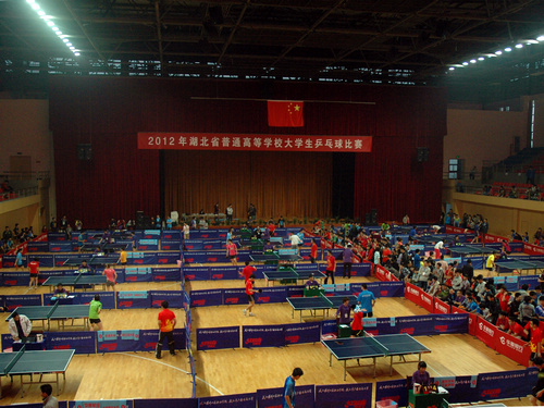 10月26日至28日,我校体育馆内张灯结彩,喜气洋洋,由湖北省教育厅主办,我校承办,湖北省大学生体育协会乒乓球分会协办的2012年湖北省普通高校大学生乒乓球比赛在这里隆重举行。