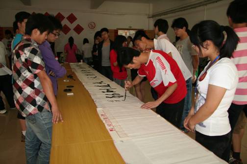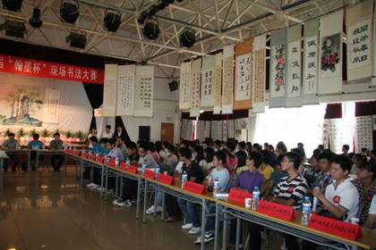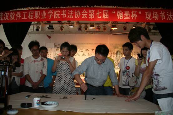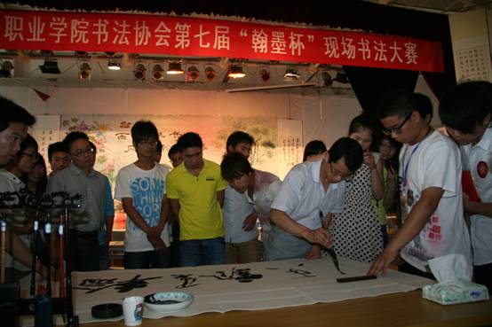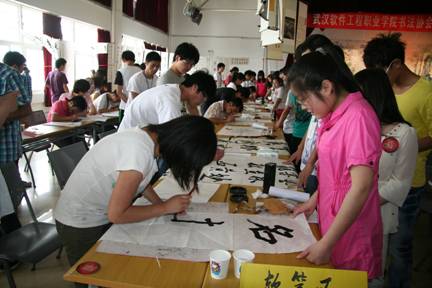 书友云集再续兰亭雅韵、高朋满座重温翰墨遗风,5月13日下午,我院书法协会第七届“翰墨杯”现场书法大赛在学院综合楼多功能厅隆重举行,本次大赛以“雨过琴书润、风来翰墨香”为主题。院书法协会特别邀请了《书法报》的编辑安桅先生、孙超先生,中国硬笔书法协会高校书法委员会常务副秘书长、湖北硬笔书法协会副秘书长杨文博先生,湖北硬笔书法协会理事庄标先生,武汉大学书画联谊会孙畅先生,院书法协会指导教师李建强副教授,以及武汉大学、湖北美术学院、中国地质大学、武汉工程大学、湖北中医药大学、湖北第二师范学院、湖北经济学院、华中科技大学武昌分校、中南财金政法大学武汉学院、武汉科技大学城市学院、武汉职业技术学院、湖北交通职业技术学院、武汉铁路职业技术学院、武汉船舶职业技术学院、武汉电力职业技术学院等30余所高校书法协会代表和本校多个协会的会长100多人与我院的参赛选手、书法协会会员共计400多人参加了此次现场书法大赛活动。 书法大赛现场展出了数百幅优秀书画作品,到处弥漫着浓浓的墨香。此次“翰墨杯”现场书法大赛是学院“五月技能文化节”的主要活动之一,这次现场书法大赛主要分为四个环节,第一环节是活动开幕,介绍现场书法比赛规则,并由中国硬笔书法协会高校书法委员会常务副秘书长、湖北硬笔书法协会副秘书长杨文博先生开笔;第二环节是参赛选手进行现场书法创作,比赛分为软笔比赛和硬笔比赛;第三环节是聘请《书法报》编辑孙超老师现场点评作品,孙老师精彩的点评,给作者提出了宝贵的意见,使大家有很大的收获;第四环节是各高校书法协会代表相互交流书法协会管理和建设发展的经验,大家畅所欲言,气氛非常活跃。 我院“翰墨杯”现场书法大赛是书法协会的一项传统赛事和主要特色活动,书法协会自成立以来已成功地举办了6届。《书法报》曾报道过我院第五届、第六届“翰墨杯”现场书法大赛,《书法报》编辑安桅老师对这项活动给予了很高的评价,他们还多次激励全体书法爱好者要潜心临帖,不可好高骛远。近年我院通过“翰墨杯”现场书法大赛活动先后推选书法新秀50余人,在书法协会指导教师李建强副教授的指导下参加了全国、省、市各级比赛并获得金、银、铜、优秀等各级奖项100多次,会员公开发表优秀作品50多幅。书法协会也先后被评为“全国优秀艺术社团”、“湖北省大学生优秀社团”等荣誉,并编辑出版有成果集《翰墨飘香》、教材《书法入门》、《钢笔字帖》。第七届“翰墨杯“现场书法大赛为我院提供了一场精彩的文化大餐,为广大书法爱好者提供了一个交流展示的平台,此次活动自发起、初赛、复赛再到今天的现场书法大赛历时2个余月,通过该活动不仅提高了学生的书法技能,陶冶情操,促进了学生的全面发展,也为学院营造了良好的校园文化氛围。