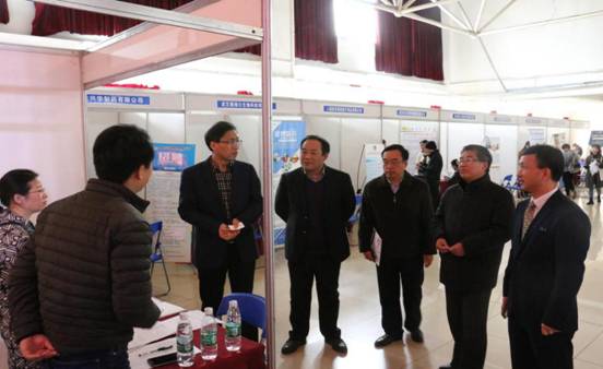 校党委书记江贤英和副校长万国邦莅来到招聘会现场,向光谷生物城,武汉国家生物产业创新基地有限公司企划外联部舒军平部长了解“光谷生物城进高校”运作情况,向用人单位招聘负责人了解企业招聘需求及人才储备计划,指导环化学院做好校企合作人才培养的工作对接。