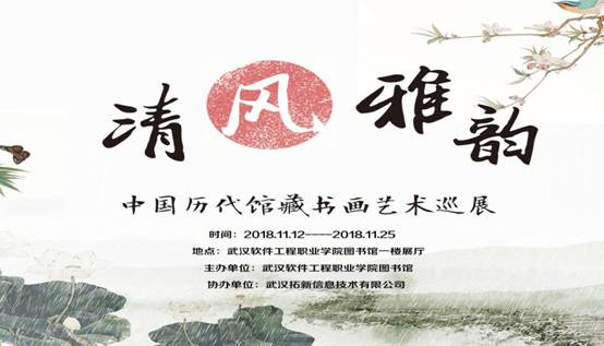 (通讯员宁婉)11月12日,63幅精选的中华历代书画名作在图书馆一楼大厅盛装以待,静候知音。校图书馆主办、武汉拓新信息技术有限公司承办的“清风雅韵——中国历代馆藏书画艺术巡展”正式开幕,并将持续至11月25日,以求弘扬中华优秀传统文化、传承千古典藏,提升师生人文艺术修养、丰富校园文化生活。