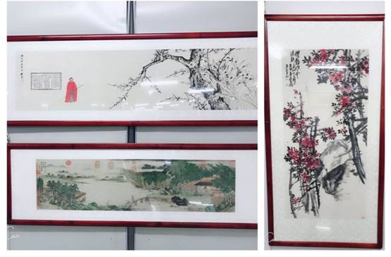 唐代李思训的《帆楼阁图》,宋徽宗赵佶的《听琴图》,明代仇英的《枫江垂钓图》、文征明的《品茶图》,清代郑板桥的《幽兰图》、吴昌硕的《秾艳灼灼云锦鲜》等,这些流芳百世、享有盛誉的历代名家作品,利用现代微喷仿真技术按1:1比例复制,精准再现其风采神韵和动人魅力。师生驻足流连忘返,近距离观察感受这些珍品的每一个细微之处,陶醉于中华博大精深的书画艺术之中。