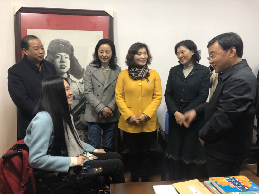 董青总编一行来到我校汉口校区董明工作室,看到了她厚厚的一大串工作牌,见证了她一路参加汶川地震、北京奥运会、北京残奥会、上海世博会、广州亚残会、深圳大运会等志愿服务的历程,深受感动,并为其送上鲜花和慰问金。董明副书记向各位领导汇报了自己近期的工作和生活情况,向大家介绍了我校军运会志愿者相关工作情况,她表示定将不负中央嘱托,牢记时代使命,继续传承和发扬志愿者精神,和学校一起努力,争取高水平完成武汉军运会摔跤项目志愿服务工作。