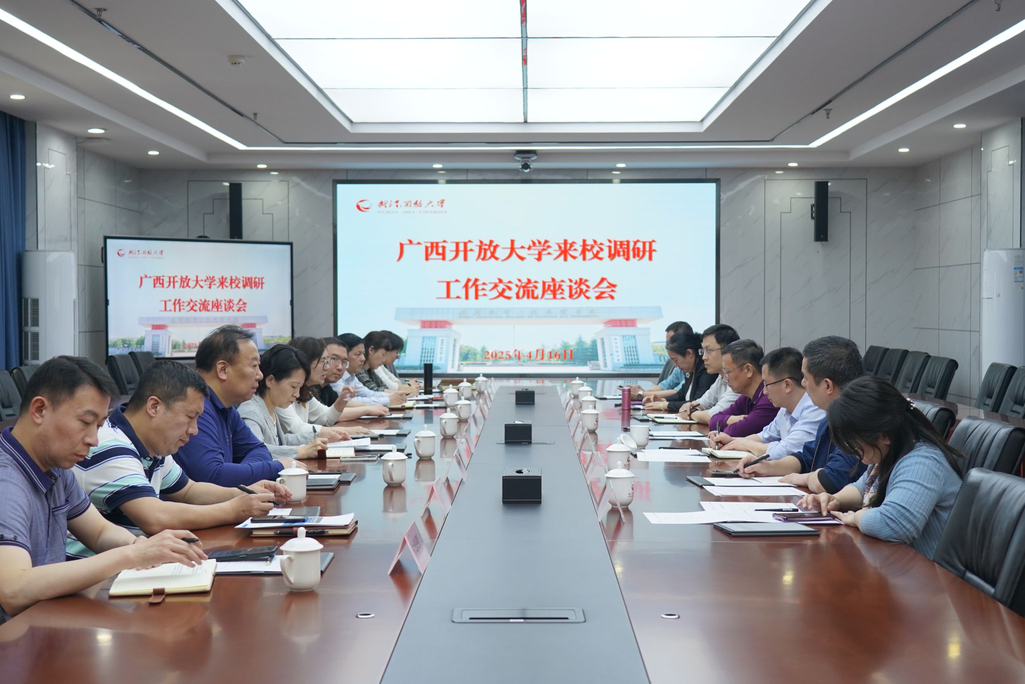 (通讯员:钱启)4月16日下午,广西开放大学党委书记李卫东一行来我校考察交流,在光谷校区东院行政楼三楼大会议室举行交流座谈会,我校副校长孙美华及相关部门负责人参加座谈。