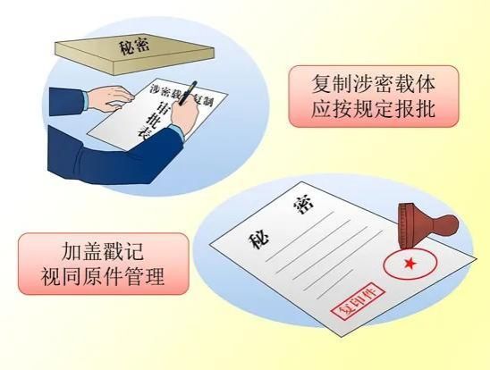 (五)复制国家秘密载体或者摘录、引用、汇编属于国家秘密的内容,应当按照规定报批,不得擅自改变原件的密级、保密期限和知悉范围,复制件应当加盖复制机关、单位戳记,并视同原件进行管理;