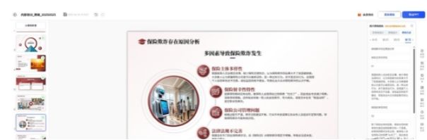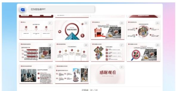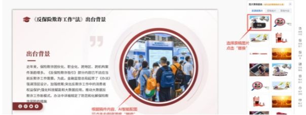 【AI配图】页面中如果有配图,那么系统会自动按照之前保存的图片进行一键替换,如果这页没有原稿图片,那么系统会很贴心的根据内容进行AI配图,这样大大减少了我们自己找素材的时间。